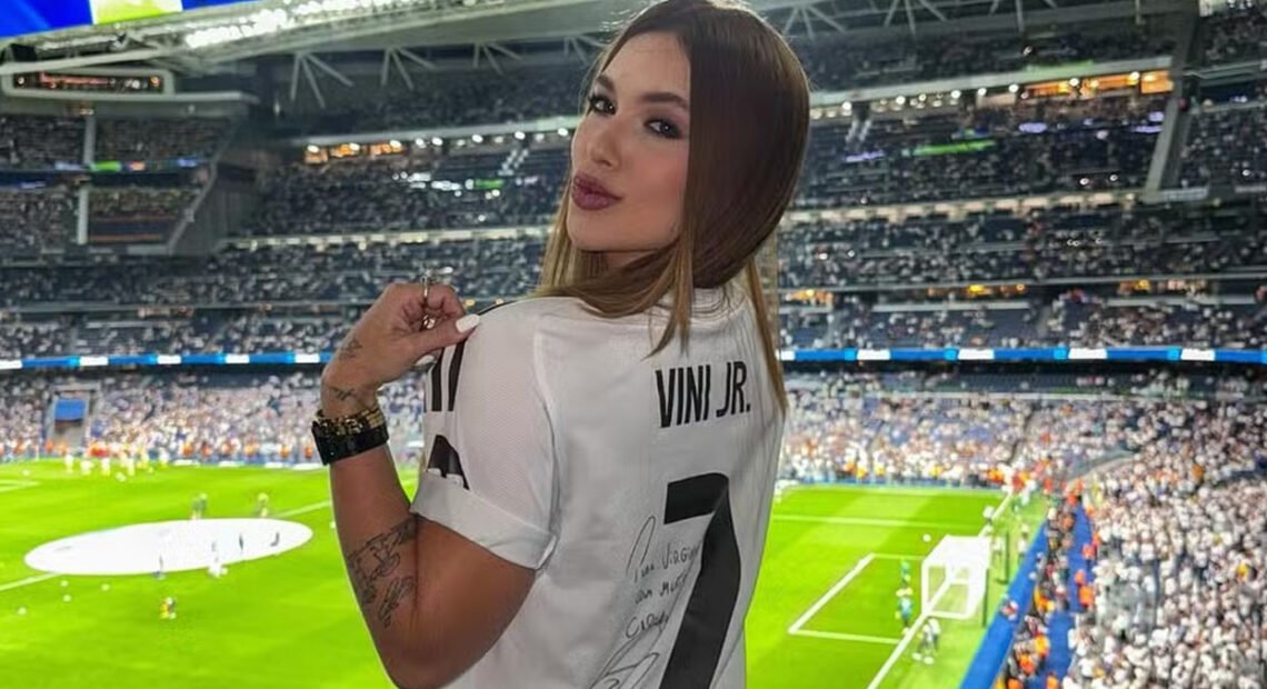 Virginia Fonseca assiste jogo do Real Madrid com camisa de Vini Jr.: ‘HALA MADRID’