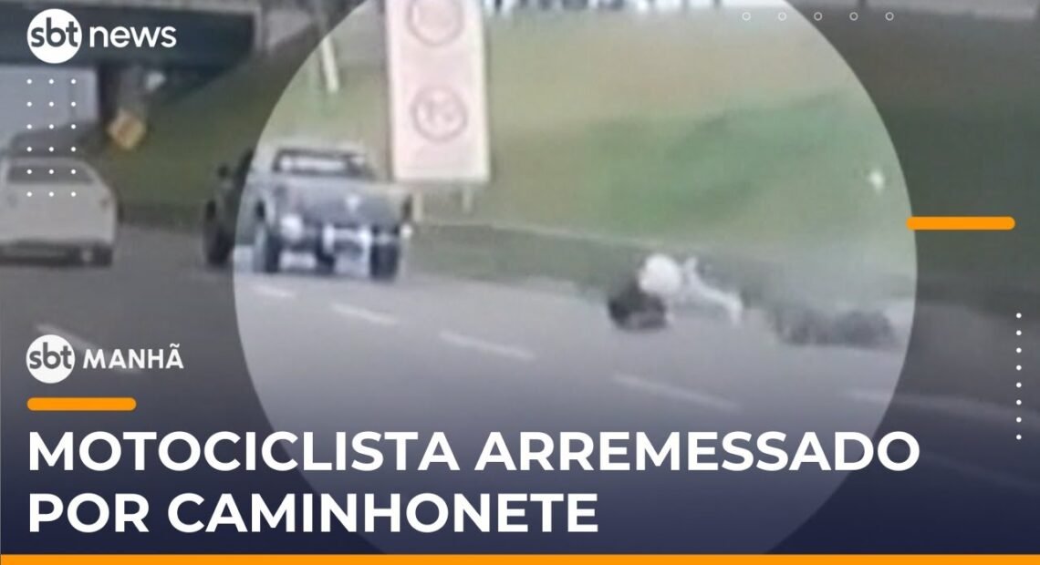 Veja Vídeo – Motociclista é atropelado arremessado contra mureta por motorista em caminhonete; veja