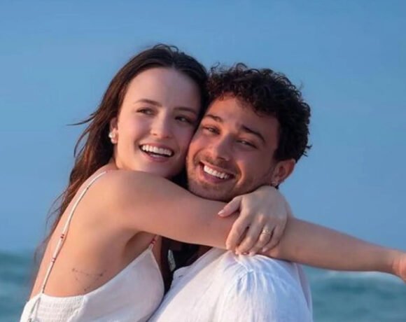 “O karaokê reinando em toda folga!”, escreveu Larissa ao registrar o casal cantando. Em outro story, ela surgiu de biquíni marrom à beira da piscina e resumiu o clima do dia: “Domingo recarregando as energias pra semana que vai começar”.