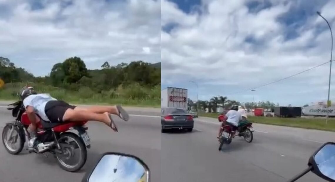 Veja Vídeo – Manobra “superman” de motociclista termina em colisão na BR-101 em SC; veja