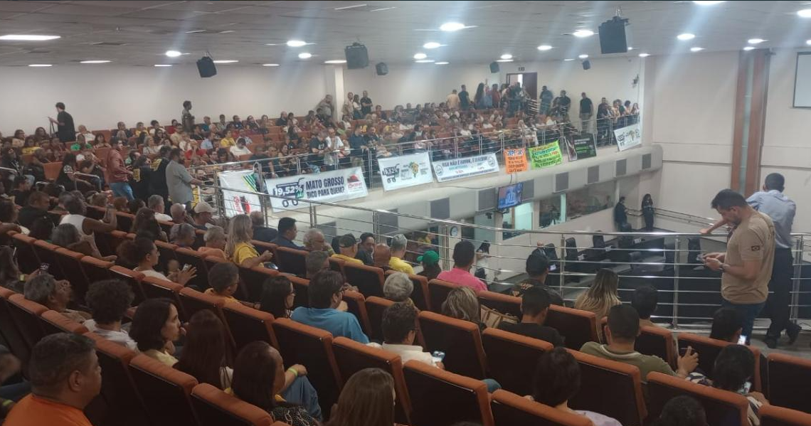 Em sessão extraordinária e com plenário lotado, os deputados aprovaram, nesta quarta-feira (21), o projeto que estabelece a Revisão Geral Anual (RGA) de 5,4% referente a 2025. Com a aprovação pela Assembleia Legislativa (ALMT), o texto retorna ao Executivo para entrada em vigor. Além da RGA, também foram aprovadas as contas do governo do Estado e do Tribunal de Contas (TCE) referentes a 2024.