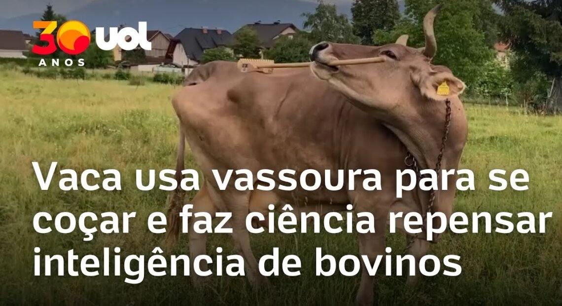 Veja Vídeo – Vaca usa vassoura para se coçar e faz ciência repensar inteligência de bovinos; veja