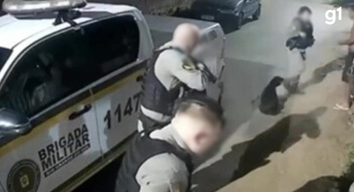 Um cachorro de rua foi baleado por um policial militar, em Campo Bom, região metropolitana de Porto Alegre. Tudo aconteceu durante uma abordagem. Imagens de uma câmera de monitoramento mostram quando moradores que estavam em frente a uma casa, são surpreendidos por agentes armados.