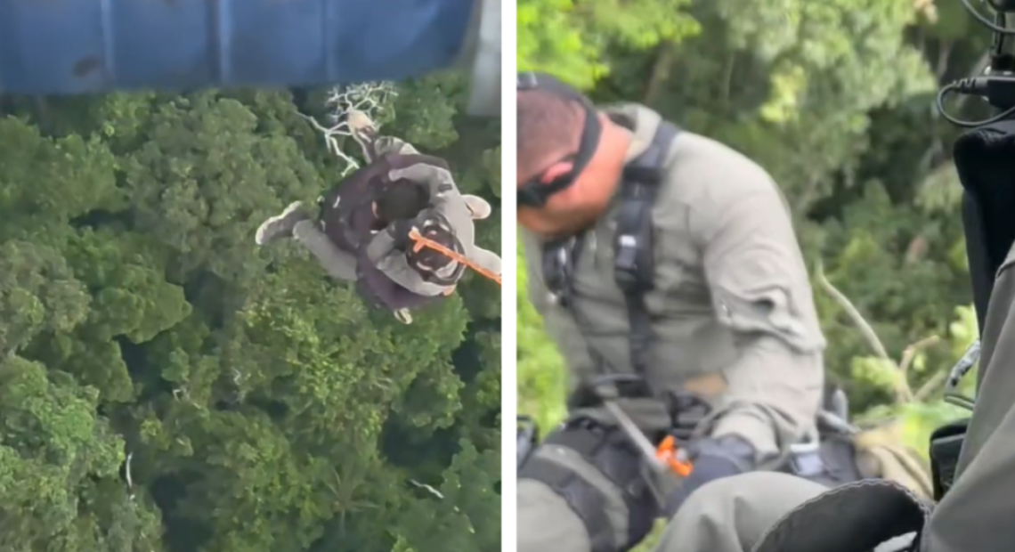 Policial usa técnica de rapel para resgatar homem isolado em mata fechada