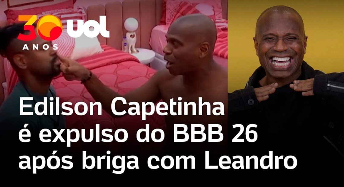 Edilson Capetinha foi expulso do BBB 26 na manhã de hoje. A assessoria de imprensa do reality informou que Edilson “ultrapassou os limites e descumpriu as regras do programa. “Mais informações serão apresentadas no programa de hoje por Tadeu Schmidt”, diz a nota.