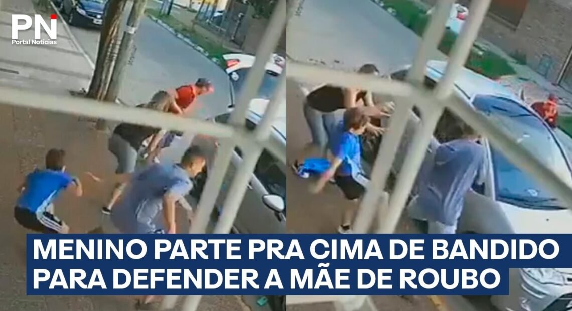 Veja Vídeo – Menino reage com coragem e enfrenta assaltante em defesa da mãe; veja