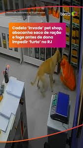 Veja Vídeo – Cadela ‘invade’ pet shop, abocanha saco de ração e foge antes de dona impedir ‘furto’