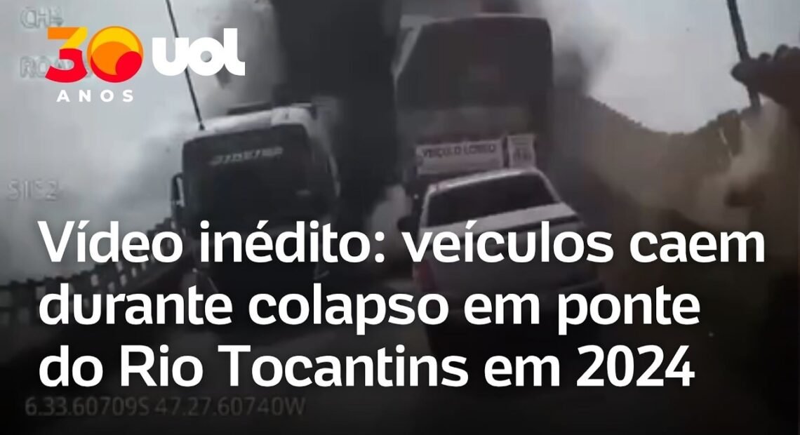 Imagens inéditas mostram o desabamento da ponte Juscelino Kubitschek, na TO-226, entre Tocantins e Maranhão, registrado de dentro da cabine de um caminhão. O flagrante detalha o colapso da estrutura ocorrido em 2024, pouco antes da reconstrução e inauguração da nova ponte em 2025.