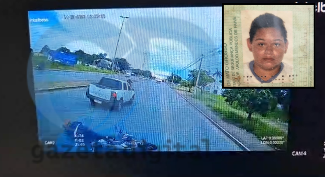 Uma câmera de segurança registrou o momento em que a motociclista Camila Carmem de Oliveira da Silva foi atingida por um caminhão e morreu na tarde de terça-feira (24). O acidente ocorreu na avenida Fernando Corrêa, em Cuiabá.