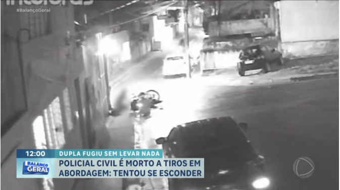 A Polícia Civil busca respostas após a morte brutal de um investigador durante o uma abordagem enquanto pilotava com sua esposa na garupa. O agente foi abordado por dois suspeitos, quando foi surpreendido por uma chuva de disparos de arma de fogo. Imagens de câmeras próximas mostram o momento em que o policial, ao perceber a reação violenta dos criminosos, tentou se esconder e buscar abrigo atrás da esposa para revidar, mas acabou sendo atingido por diversos projéteis.