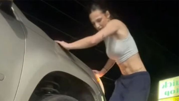 Veja Vídeo – Mulher viraliza ao tentar trocar pneu de carro sozinha; veja desfecho